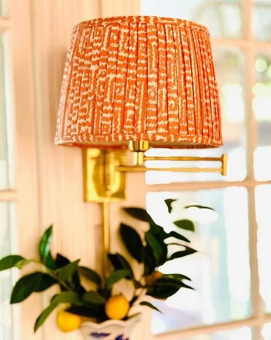 I was so excited to be featured on Apartment Therapy. As I mentioned this lampshade trick was a necessity because I would never be able to sew one! I have loved pleated lampshades since my college days when I would wander in the cute Pierre Deluxe shop in Buckhead to look at the gorgeous block printed French fabrics (textile majors, remember?) All the lamps had these exquisite (and pricey) pleated shades. When they started showing up in the last couple of years in rooms I loved on IG and in mags I decided to fake one.