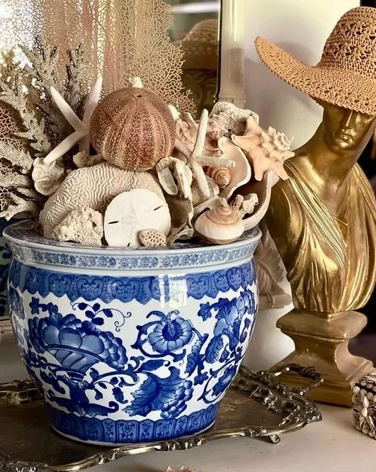 I have the first item I bought at an antique shop in the VA countryside when I was 6 years old. My mom put the date on the back, and interestingly enough, it’s a little sign with a whale on it (always the coastal girl!) It sits on my “memory shelves” in the garden room. It was purchased at Thieves Market in Alexandria VA. I remember it as being a big warehouse full of treasures. My mom and I would walk over and wander through. And I remember it was cold!! My grandmother was also an amazing gardener.