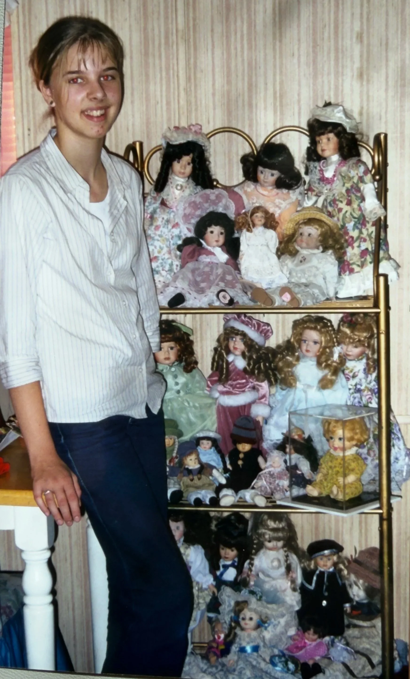 Young Amber with her doll collection